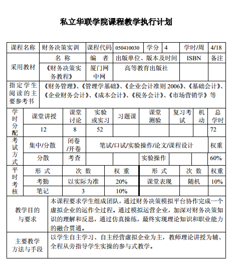 课程执行计划表