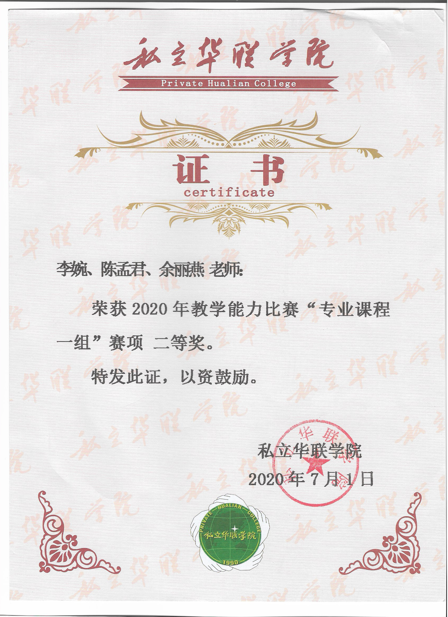 点击查看:2020年度教学能力比赛二等奖证书