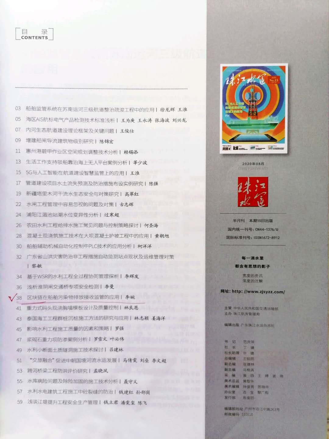 | 3 | 区块链接在船舶污染排放接收监管的应用 | 李婉 | 2020.8 | 珠江水运 ISSN:1672-8912 |